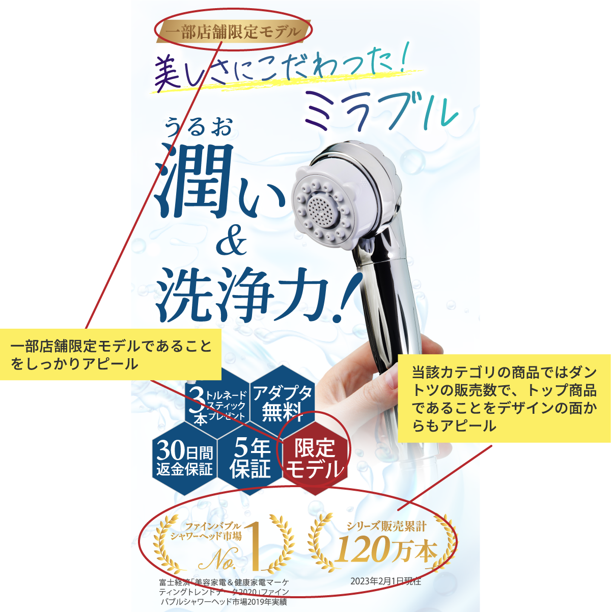 同カテゴリでトップ商品であり、多くの人が支持をしていることを可視化することで、バンドワゴン効果(集団帰属欲から決断や判断をする際に他人に同調してしまう心理効果。社会的証明効果とも言います。)を活用し、購買率の向上を狙っています。